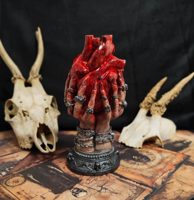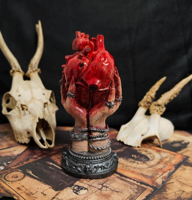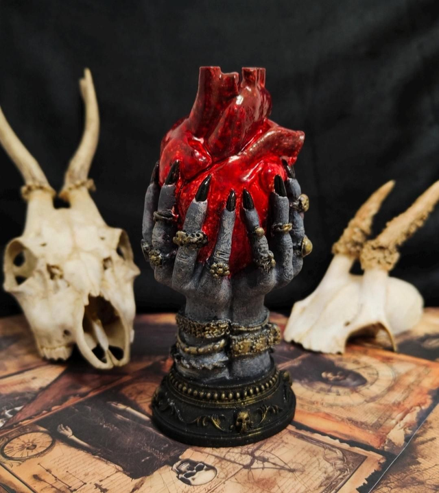 Porta nella tua casa un simbolo di amore e protezione con questa statua gotica artigianale, raffigurante un cuore stretto tra le mani. Realizzata in resina di alta qualità, è perfetta come decorazione da altare, elemento esoterico o oggetto d’arredo gotico.